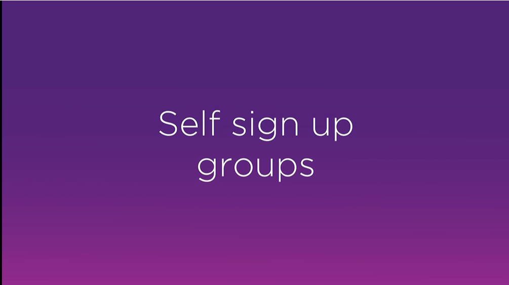 Course coordinators can set up self-enrol groups for students to sign up for group assignments and activities. Staff can create the required number of groups, set the maximum amount of members per group and create an enrolment timeframe in which students can swap groups (YouTube, 4m 41s).