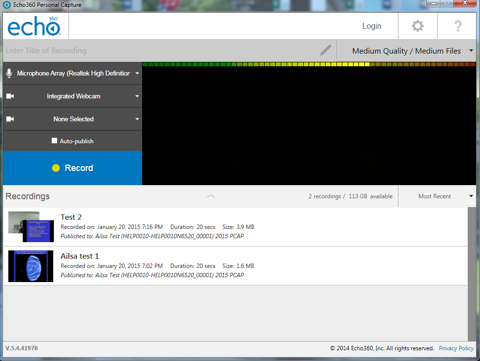 - Plug in the microphone you will be using (if you are not using a microphone built into your computer) before you open Echo360 personal capture.