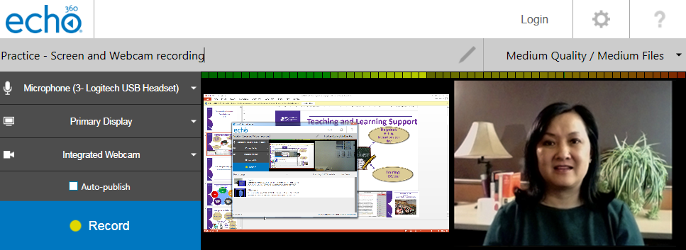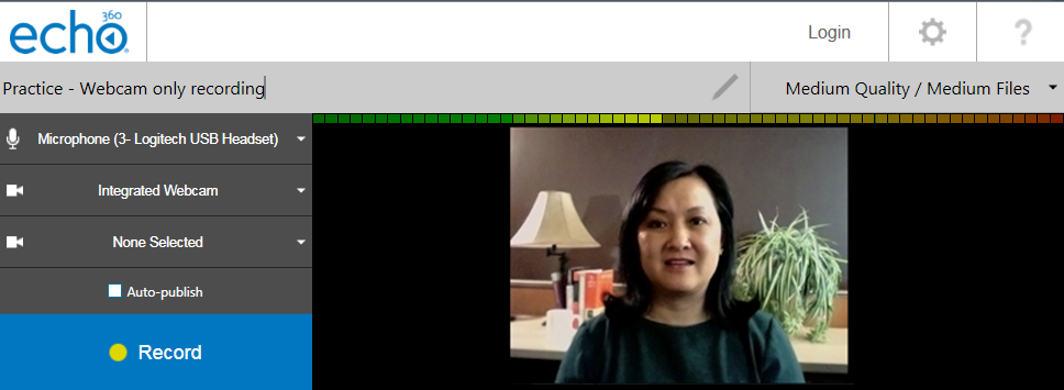 Tip: If you are not sure which microphone to select, trial the different options until you select one that works. If you are using audio from a webcam you will need to select the webcam.