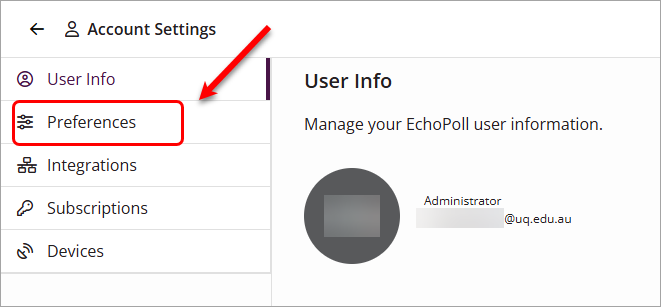 - Preferences refer to the settings for Session, Assignment, Default Participation, and Join Code.